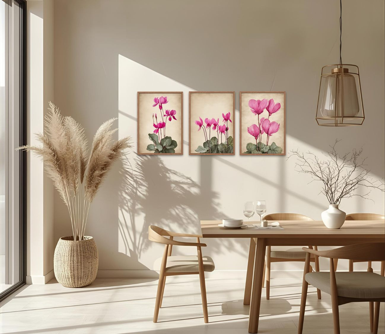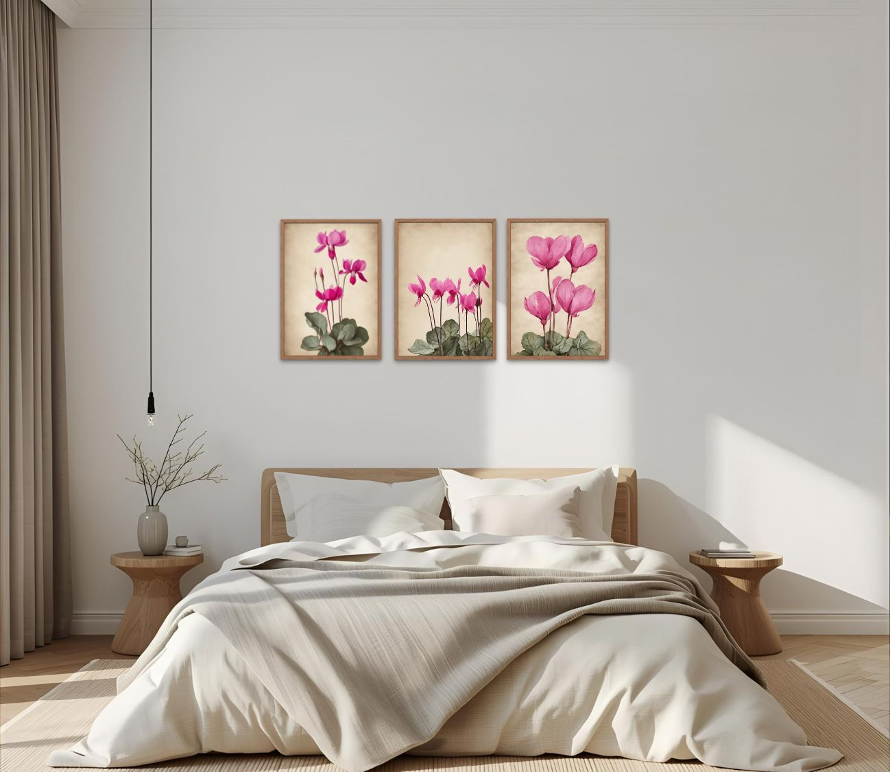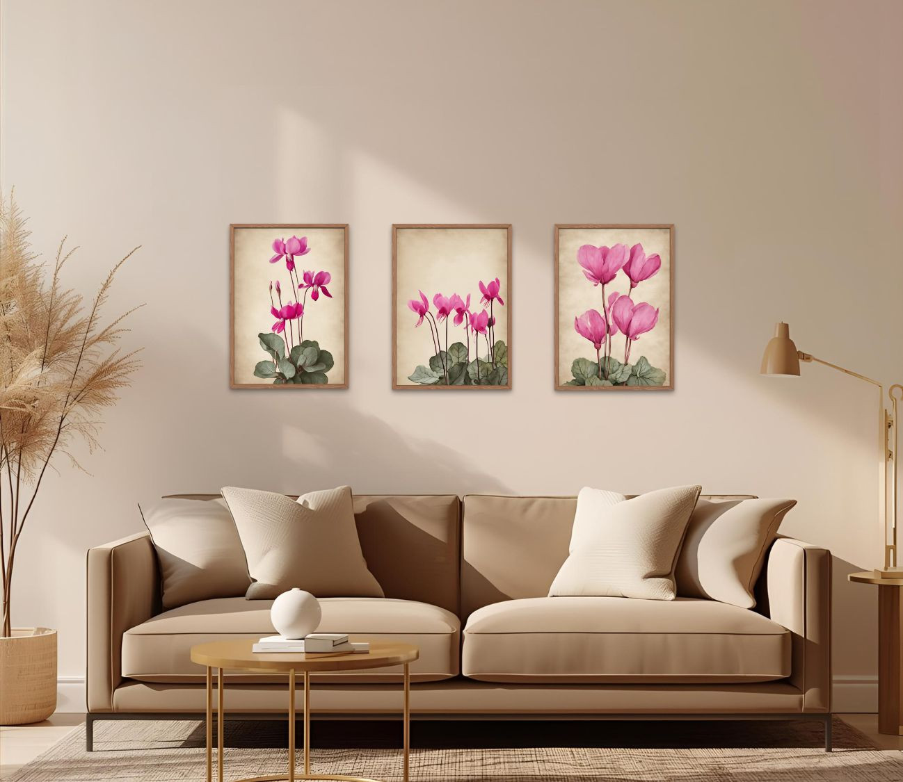 סט 3 הדפסים מרהיבים של רקפות – שילוב מושלם של טבע ואומנות לעיצוב הבית.