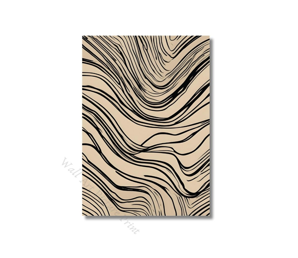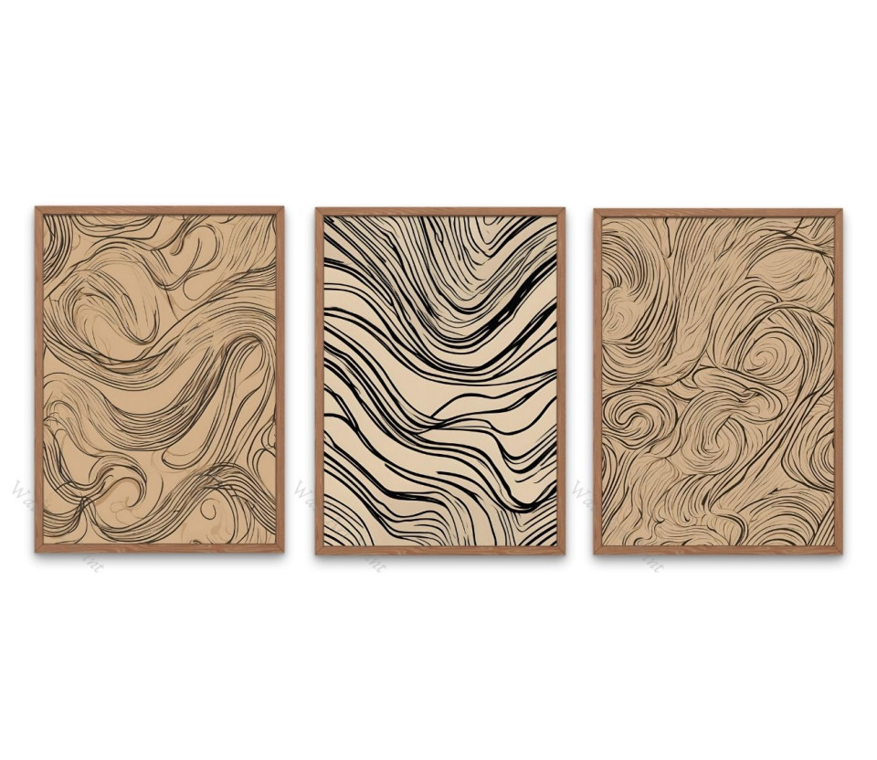 סט 3 הדפסים אמנותיים בעיצוב קווים מופשטים בגווני שחור-חום – הדרך המושלמת להכניס לביתך מראה מודרני, נקי ועם הרבה אופי.