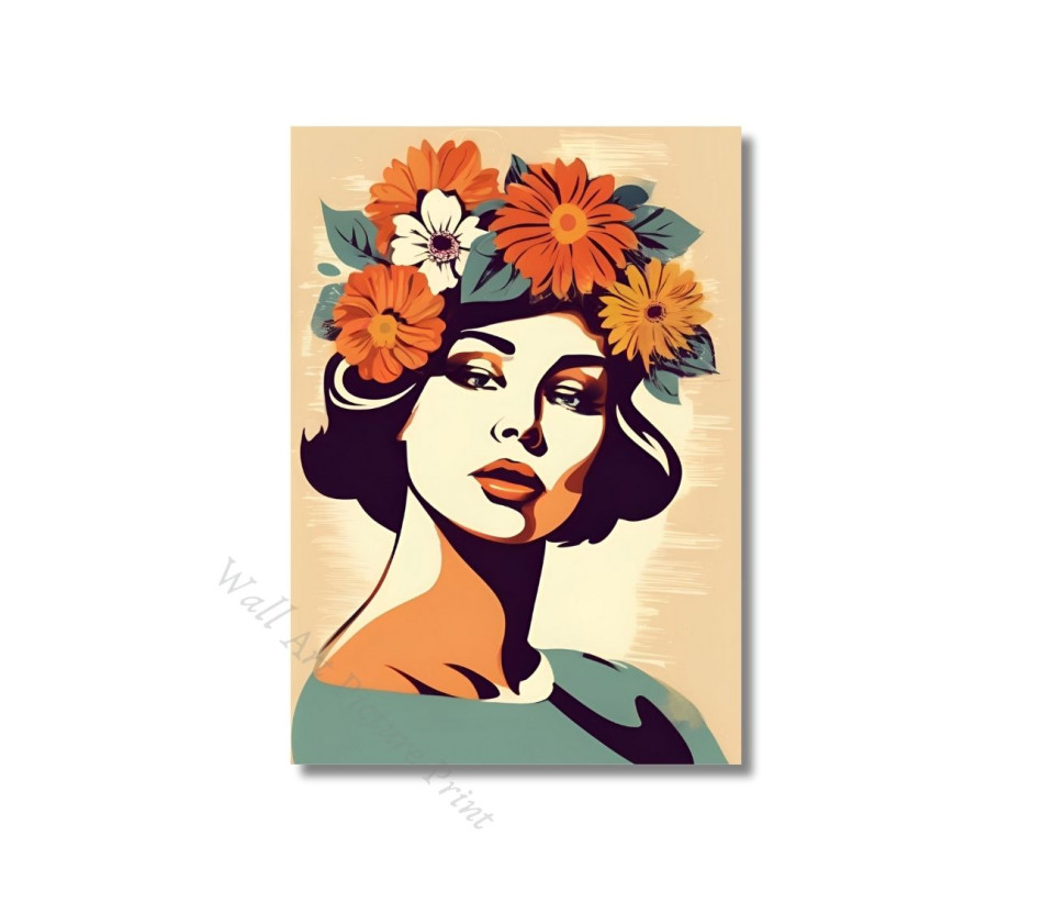 סט 3 פוסטרים הדפסים תמונות קיר נשים יפות עם פרחים על הראש סגנון רטרו