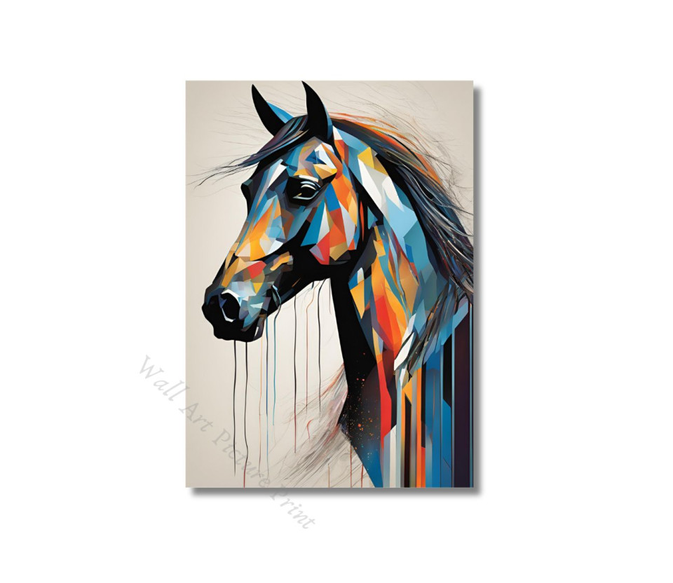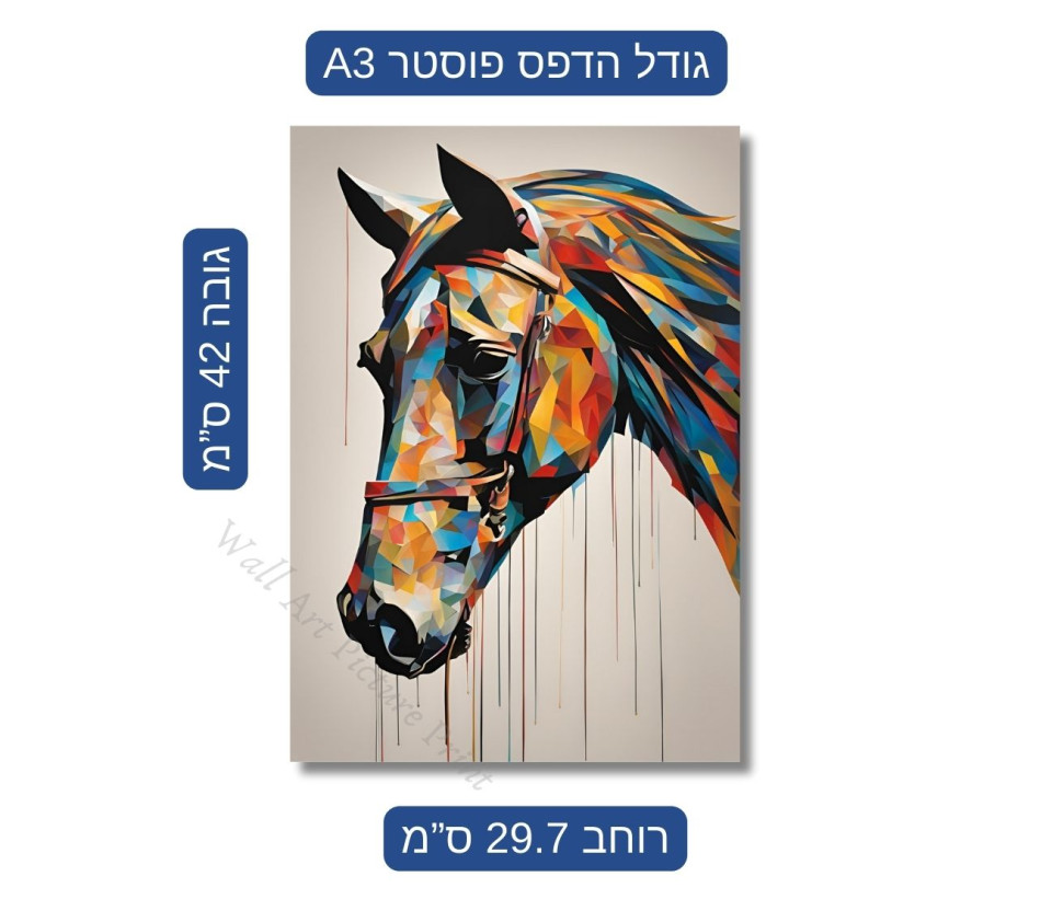 סט 3 הדפסים פוסטרים תמונות קיר סוסים אומנות מודרנית