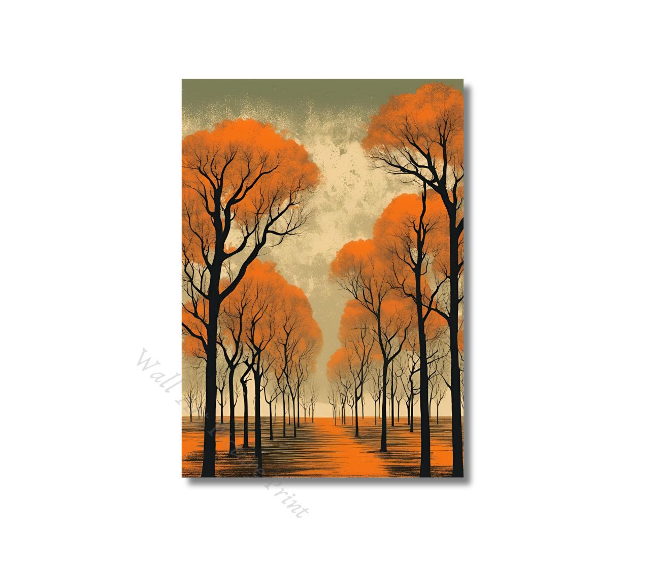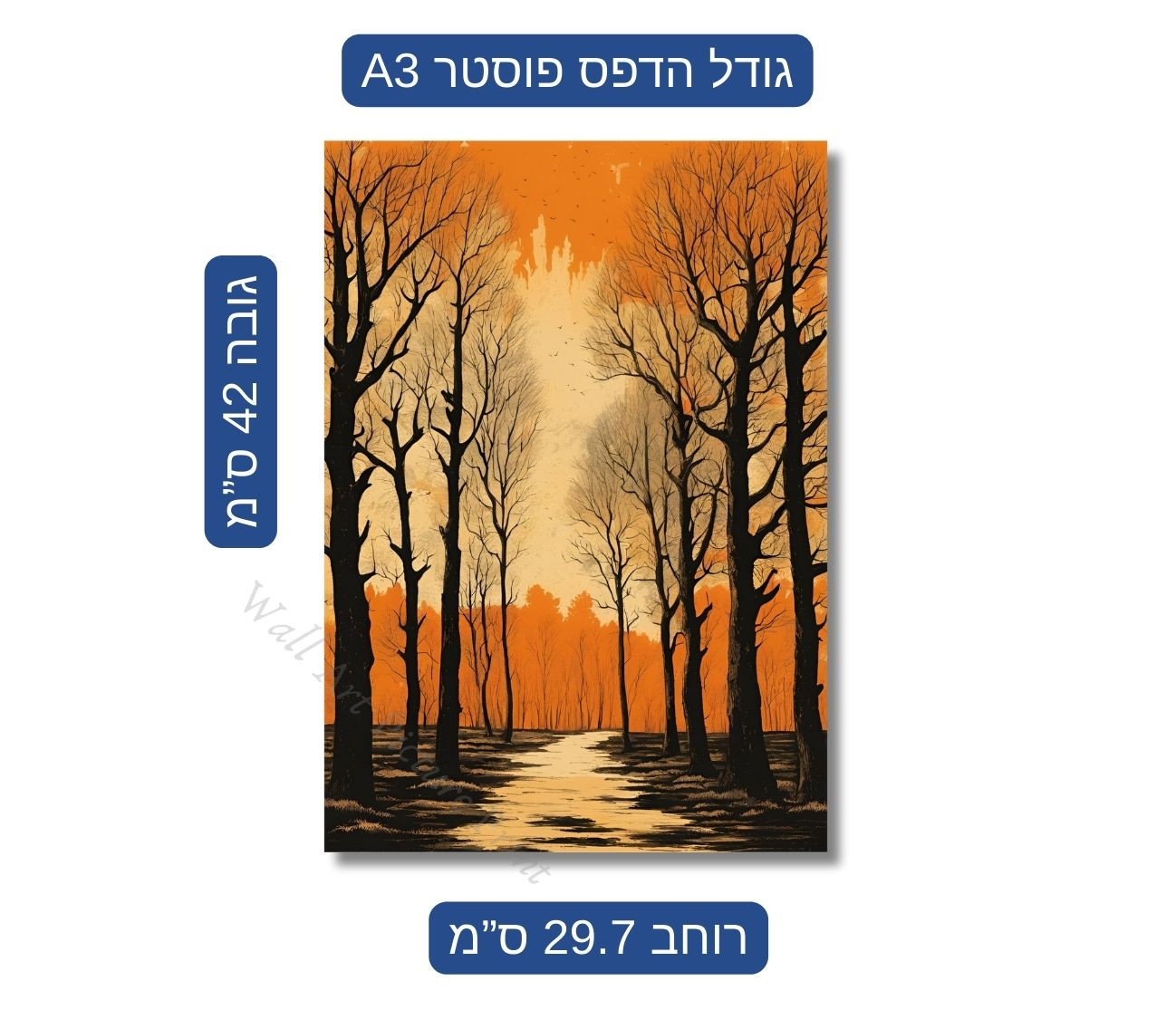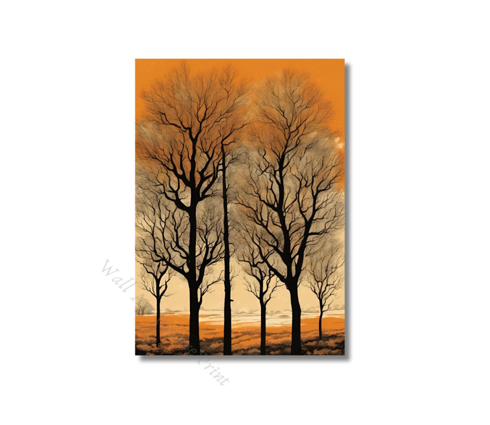 סט 3 הדפסים פוסטרים תמונות קיר עצים עם גוונים כתומים מק"ט SKU01