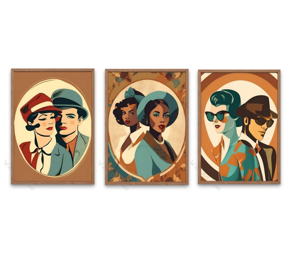 סט 3 פוסטרים רטרו – אלגנטיות נצחית לקירות הבית שלך.