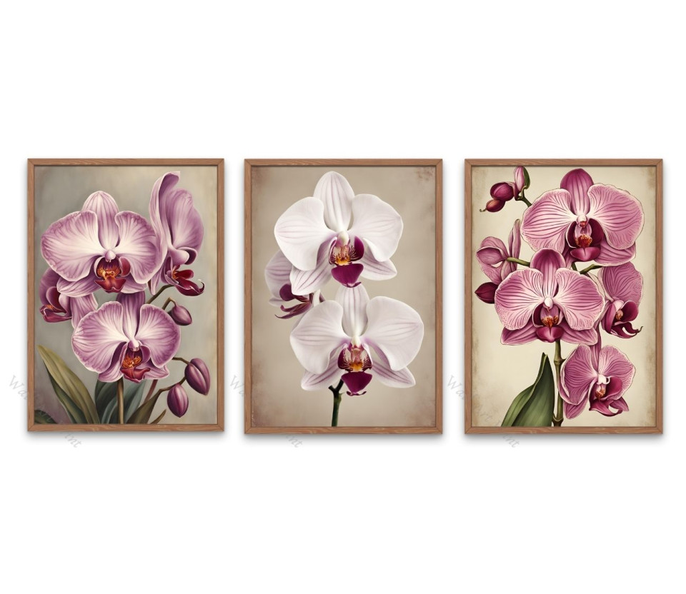 שלושה הדפסים מהממים של סחלבים בסגנון וינטג' יהפכו כל קיר ליצירת אמנות קסומה.