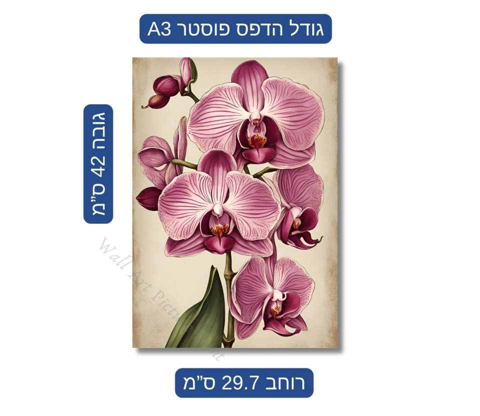 סט 3 הדפסים פוסטרים סחלבים סגולים לבנים סגנון וינטג'