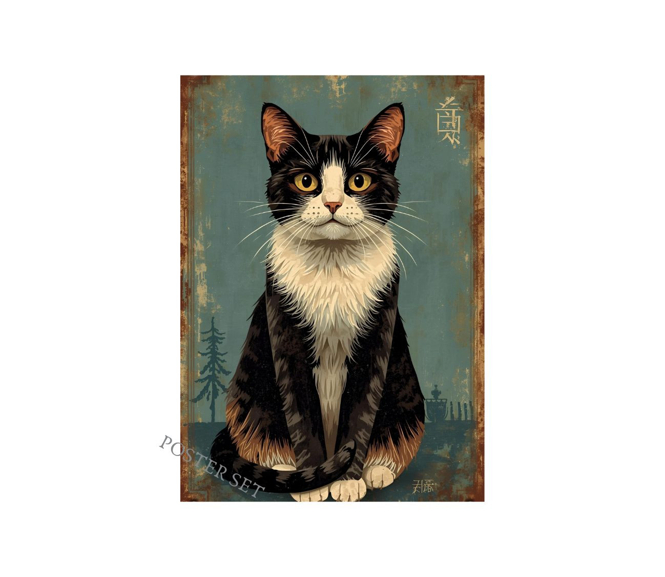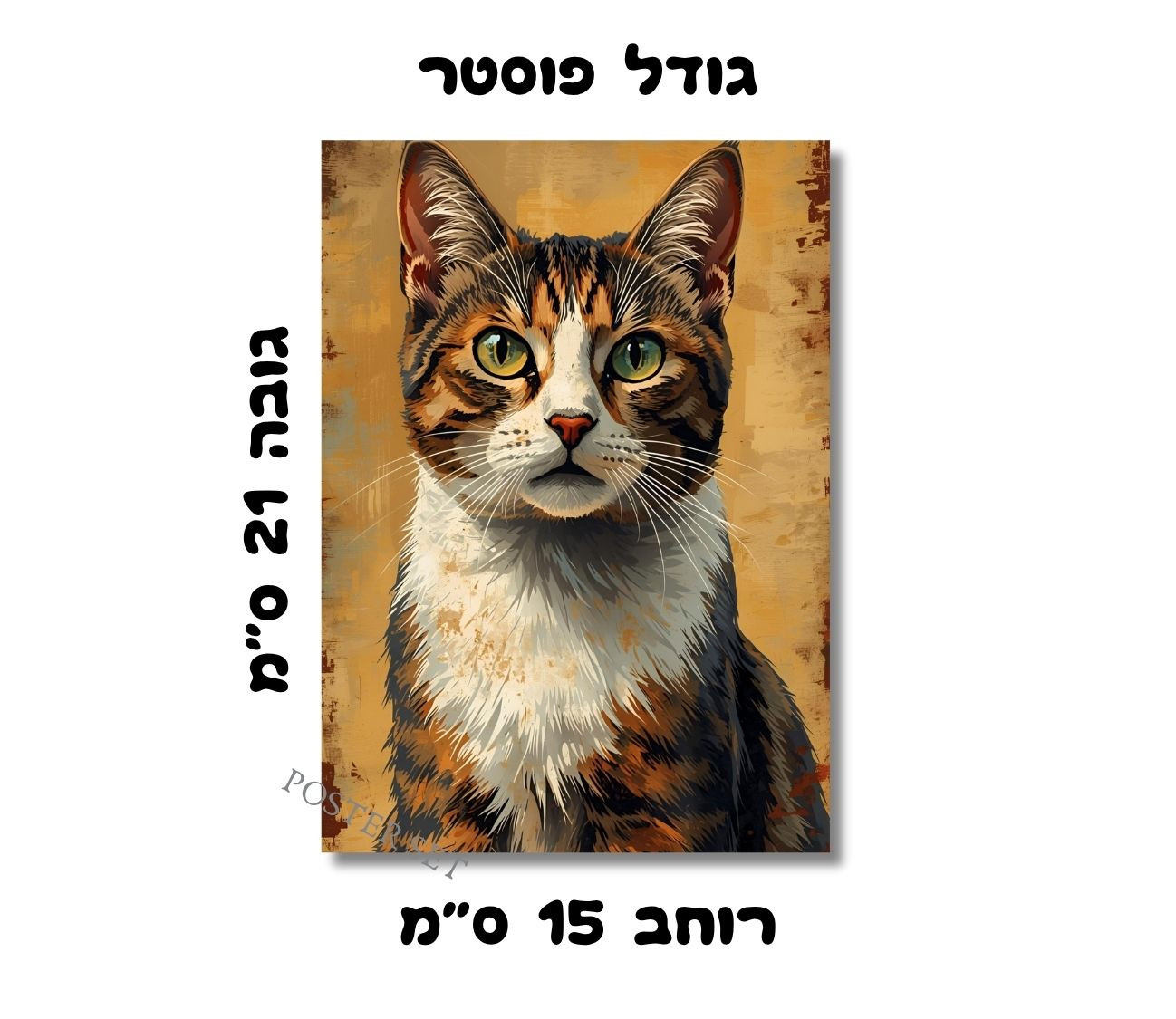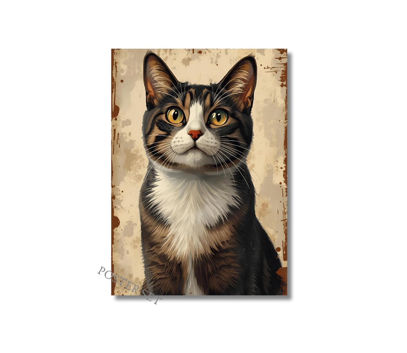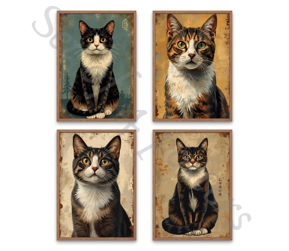 כל פוסטר מציג חתול מלא שיק ואישיות – שילוב מושלם בין אמנות קלאסית, צבעוניות חמה ותחושת חמימות ביתית.