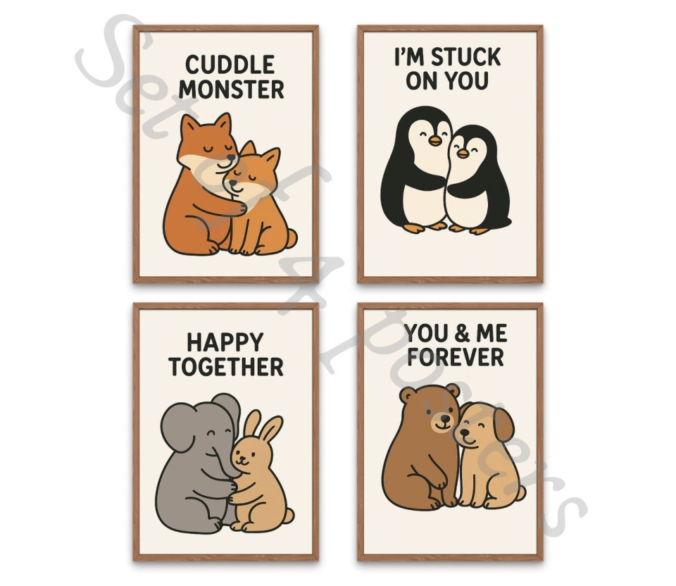 הכניסו חמימות, אהבה וקסם טבעי אל הבית עם סט מהמם של ארבעה פוסטרים המציגים זוגות חיות מתוקים מהטבע, מלוּוים במשפטים רומנטיים מלאי רוך וחיוך.