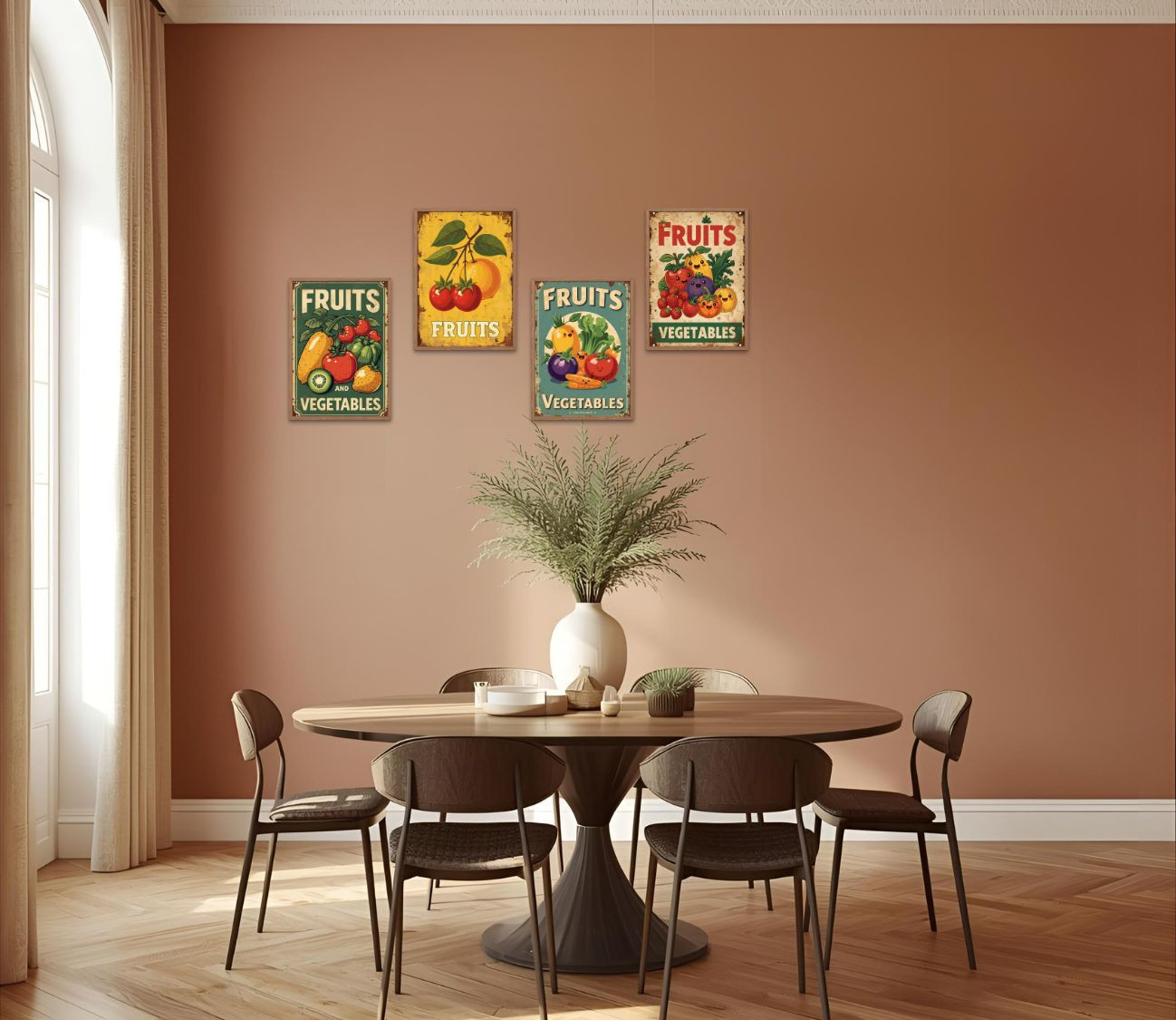 סט 4 פוסטרים פירות וירקות - נגיעת צבע בריאה לכל פינה בבית!