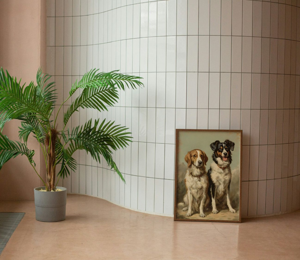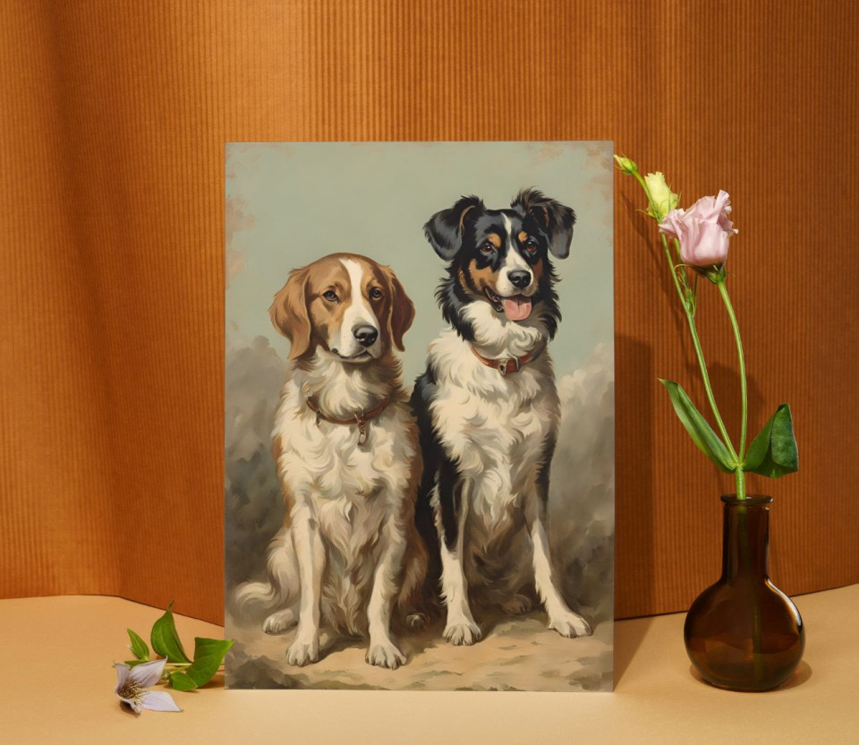 הדפס תמונת קיר כלבים מקסימים סגנון וינטג'